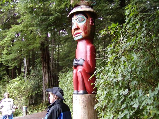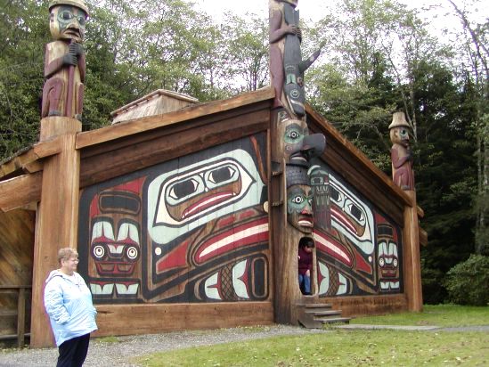 The next stop was Totem Heritage Center and its collection of the oldest totems in the nation, and the Tribal House at Totem Bight State Park (322-331). Each of the totems has a long, intricate story in its carving--it would be an all day experience if all of these totems were explained in detail. An entire settlement lived in the Tribal House (327-328) which provided very little privacy for the inhabiting families. The door was made intentionally small so that any intruders would be easy prey if they tried to storm the house.