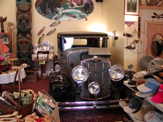 From there, it was on to the Alaskan Totem Trading Company, a gift shop selling a little of everything, including a huge number of totem poles of all sizes (336). Interspersed among the items for sale in this gift shop were many antique cars (334-335), which turned out to be more interesting than the gift shop. A side room in the shop held the Alaskan Museum, with its collection of pre-1865 antique firearms and stuffed animals (332-333). As gift shops go, this one was unique.