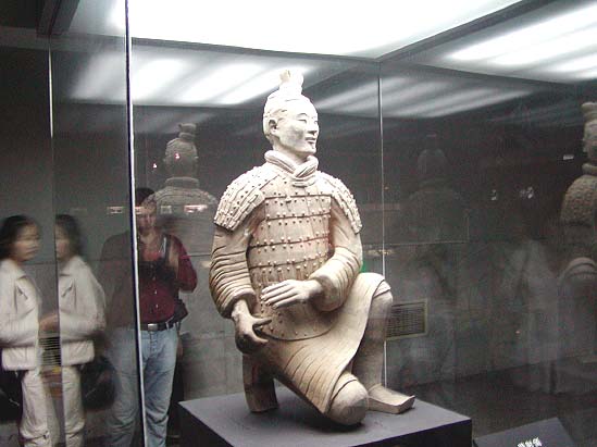 Next, we visited four pits with the largest being Pit No. 1 where 6,000 of the 8,000 soldiers and horses are located (14-27). These artifacts were not discovered until 1974 when farmers digging a well made the initial discovery. As the story unfolded, the figures were attributed to Emperor Qinshi Huangdi who supposedly had some 700,000 persons working on their construction 2,200 years ago. He ruled for only eleven years, dying in 210 B.C., but historians say he was a ruthless emperor who burned most of China's books but also started the Great Wall and standardized Chinese script and weights and measures.