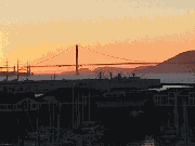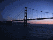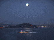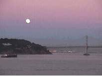 Cruise departure from San Francisco at dusk--sailing towards the sunset and under the Golden Gate Bridge with the moon rising over the Bay Bridge in the rear--spectacular!
