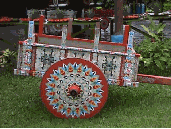One of the hand painted wooden ox carts for which Sarchi is famous. Carts are available in all sizes from miniature to full size and can be shipped home.