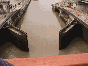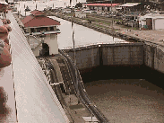 Transit through the entire canal takes 8-10 hours and costs a large passenger ship between $100-200,000 in fees. Although opened in 1914, the canal continues to be extremely well-maintained and a model of efficiency. Over 800,000 vessels have gone through the canal. Vessels transiting the canal from the Pacific to the Atlantic Oceans sail northwest, ending up more westerly in the Atlantic Ocean than in the Pacific. Locks raise or lower vessels 85 feet during the voyage and locks fill or empty with water at the rate of 3 million gallons per minute, all without any pumps. Canal ownership will transfer to Panama on December 31, 1999.