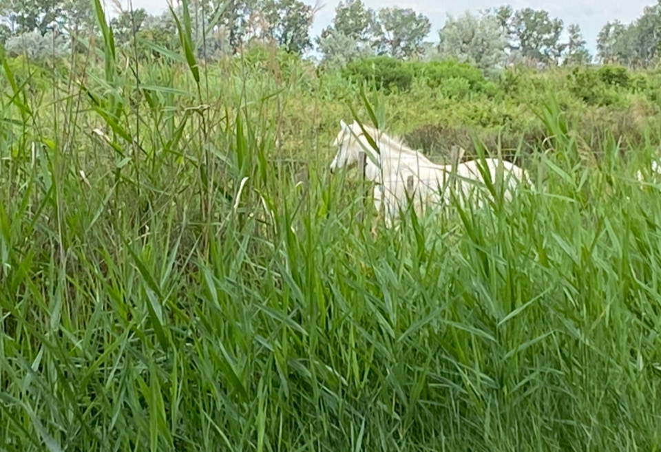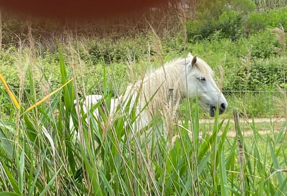 The Camargue horse, a smaller, wild horse, common to the region. The local cowboys ride these horses to round up the Camargue bulls.