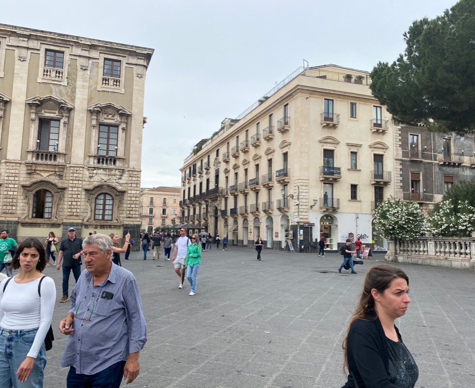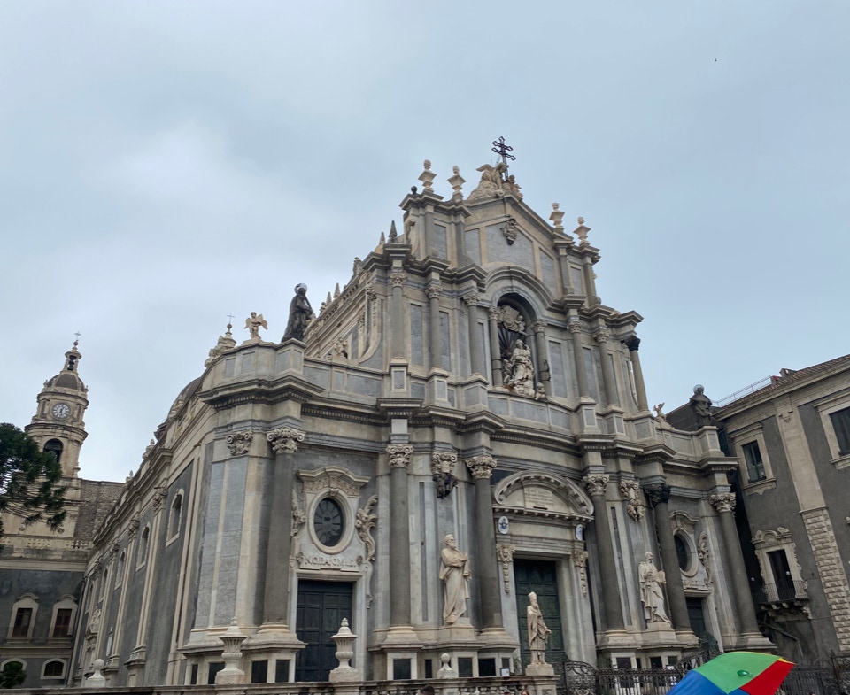 In the main square of Catania, the Piazza del Duomo. Pictured is the Cathedral of Saint Agatha.