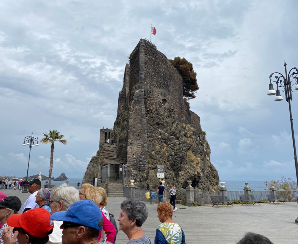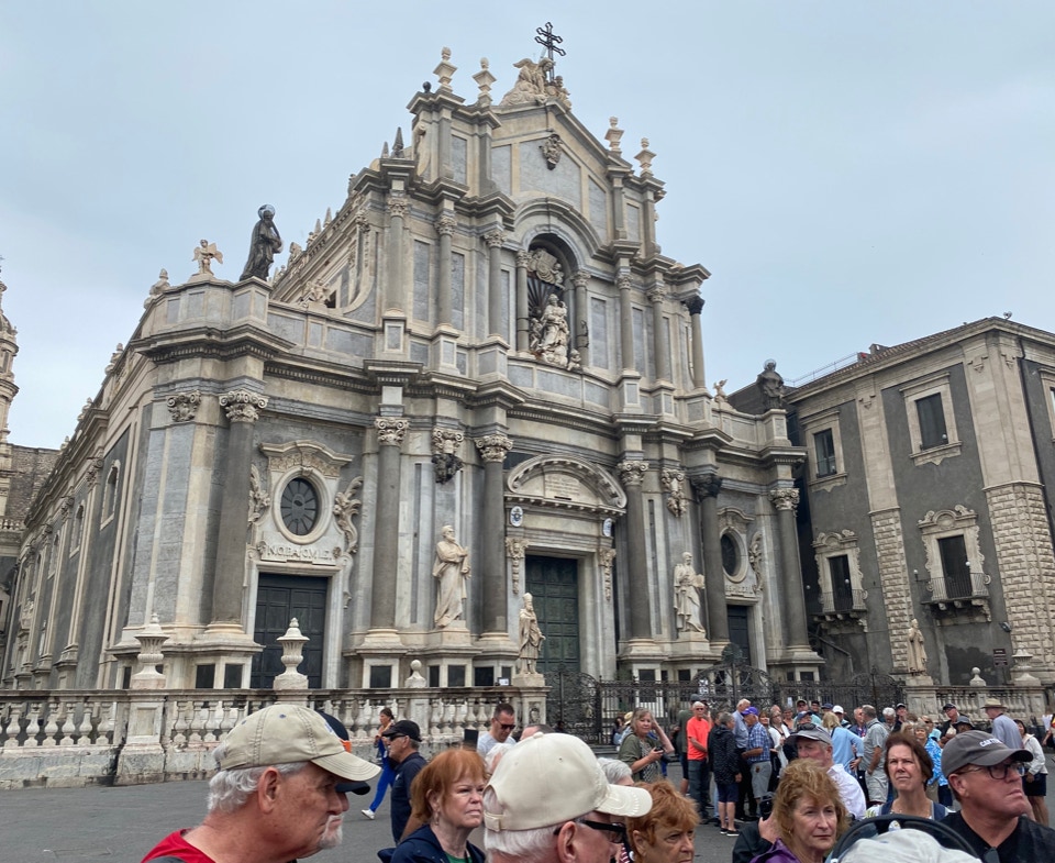We anchored near Taormina, Sicily and took tender boats to shore. The very black rocks from volcanic activity (Mt. Etna) were everywhere. We headed to Catania, Sicily’s second city.