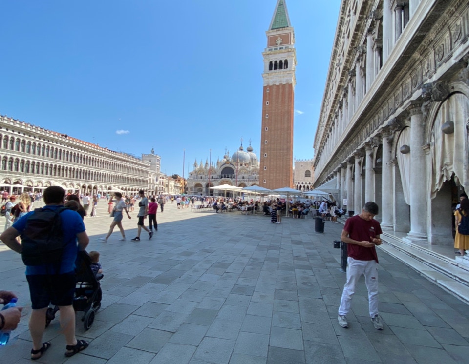 St. Mark’s Square—we enjoyed a leisurely beverage at the cafe in the background.