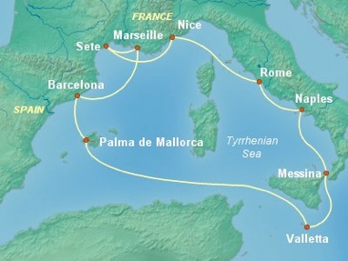 7.Friday, October 26-Arrive Messina, Sicily at 9 AM. Delight in Messina's breathtaking coastal scenery while visiting two charming Sicilian fishing villages before exploring the city's history among stunning cathedrals and notable museums. Travel along Sicily's northern coast while admiring dazzling cobalt waters and shoreline vistas atop Cape Peloro. See the mussel-growing lakes and quaint seaside villas of Ganzirri and Faro, then visit Messina's Norman Cathedral, with its bell tower astronomical clock, as well as the nearby grandiose Orion fountain. Depart Messina at 6 PM. PHOTOS