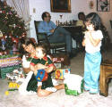 Louis, Missouri, enjoys his first Christmas with cousins Lisa and Monica, at