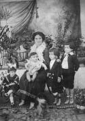 Carmelita holding baby Hector. Beribboned Mercedes; Pedro, showing a