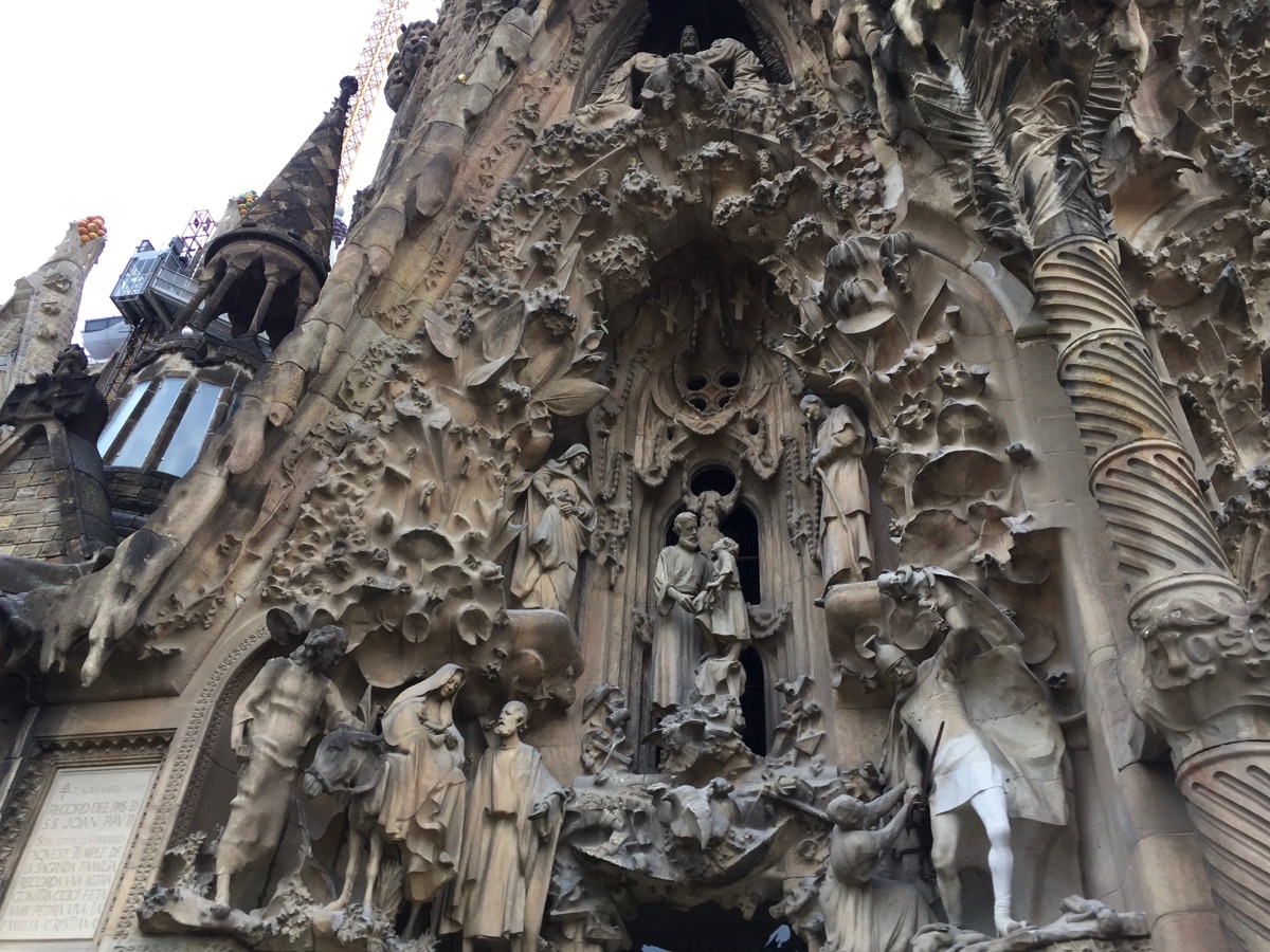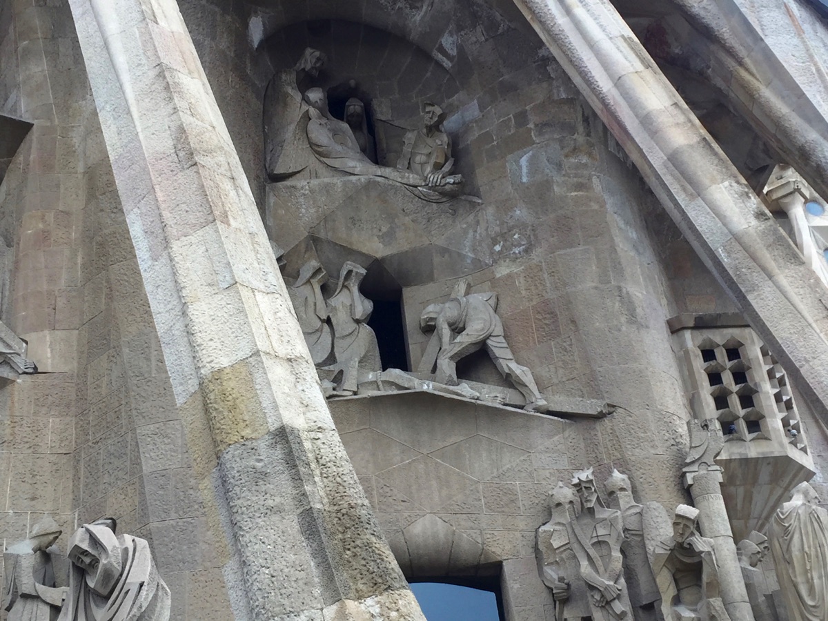 Further details from the Passion facade depicting Jesus being taken down from the cross. Gaudi devoted many of the last years of his life to the church construction and is buried at the Basilica.