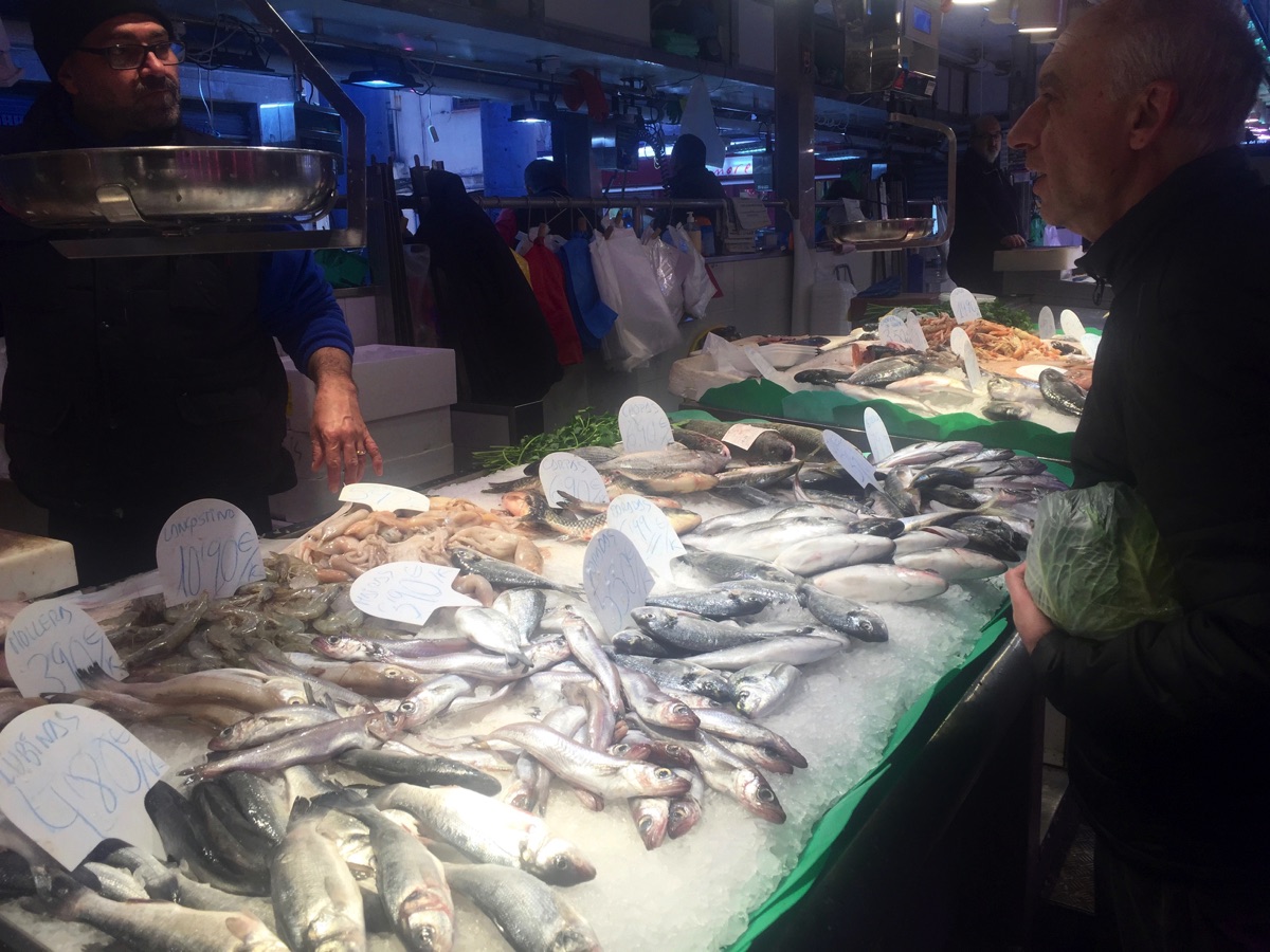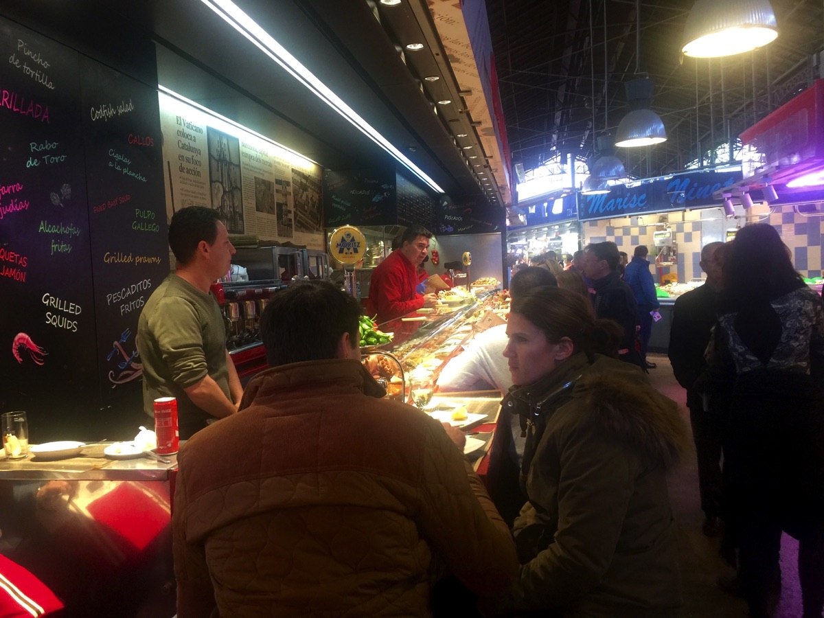 We started in La Boqueria, Barcelona's large city market. It was very crowded on this Saturday morning. The market dates from the 13th century but it has existed in its present form since 1914.