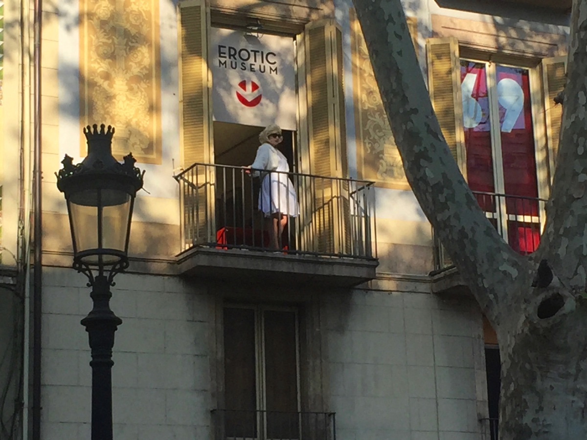 Barcelona has a little of everything including this person of unknown gender, beckoning passersby to visit the Erotic Museum.