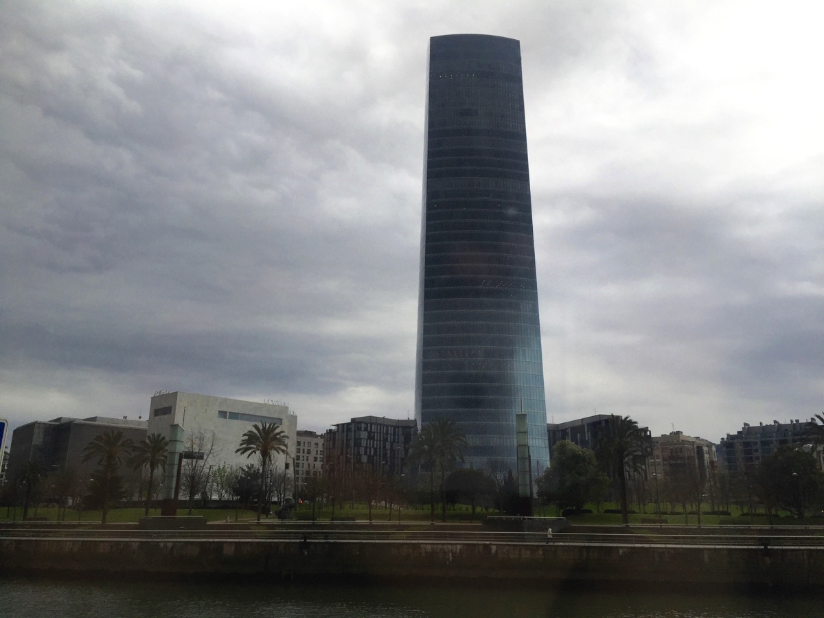 The Iberdrola building, designed by architect, César Pelli. It is the headquarters of Basque utility company, Iberdrola, and is the tallest building in Bilbao at 541 feet.