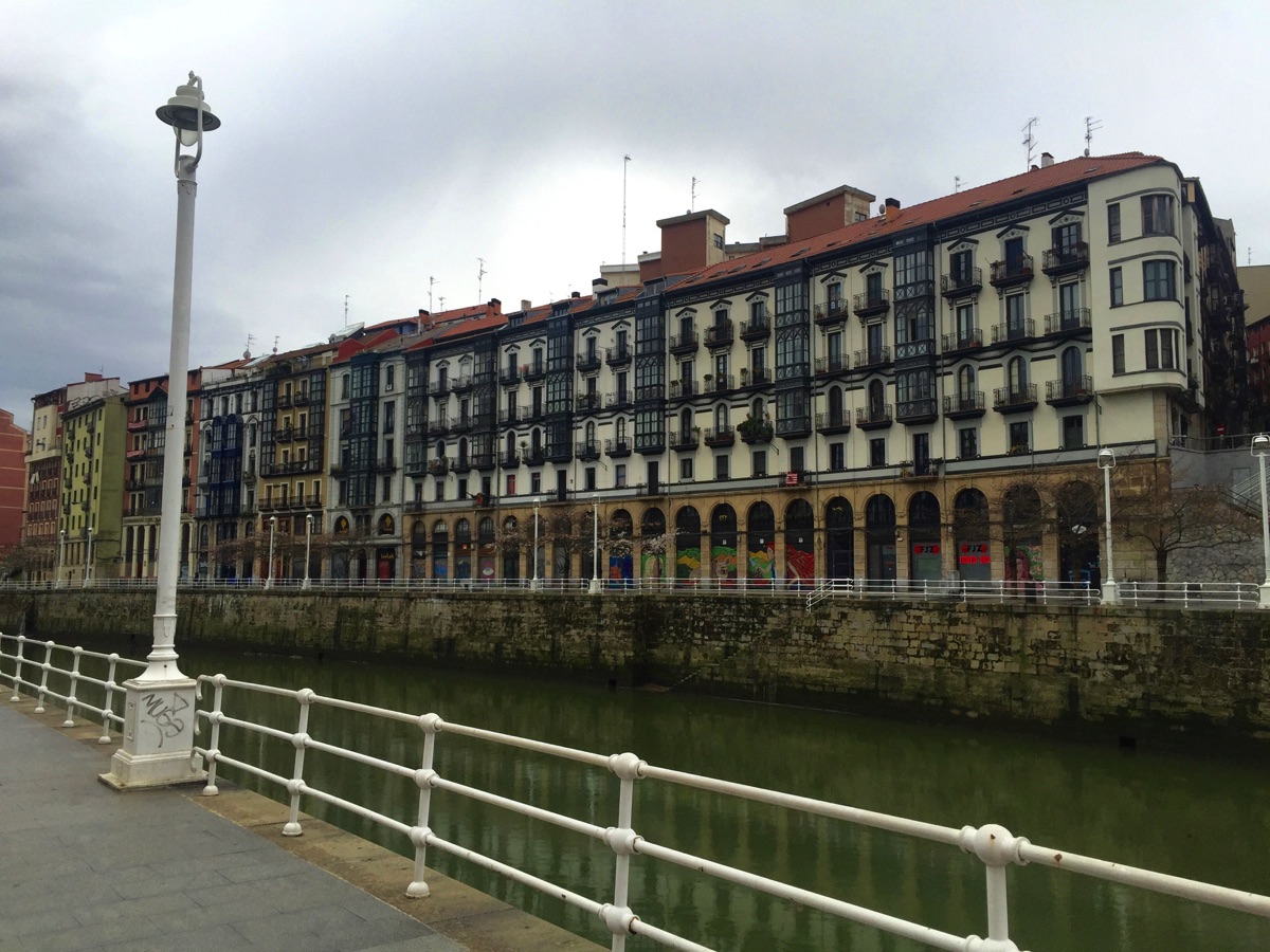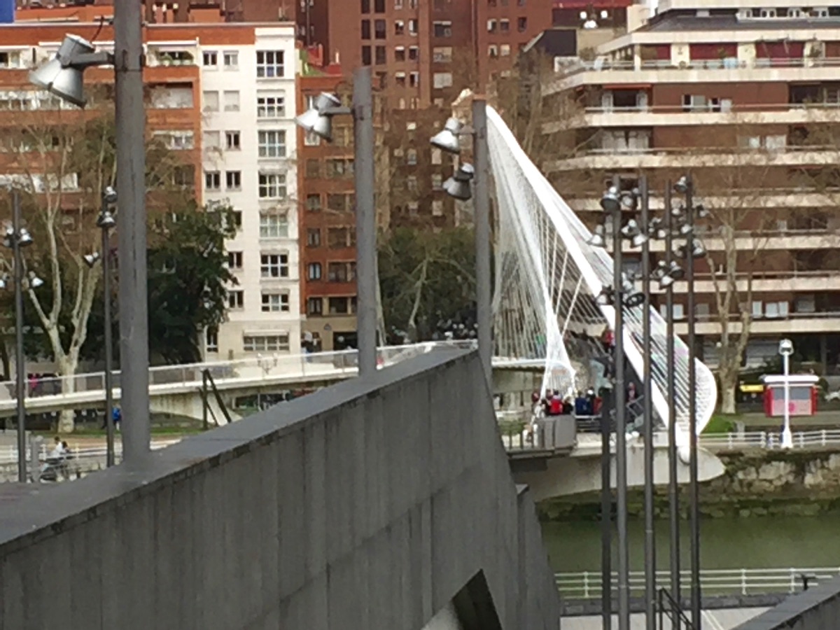 The White Bridge near the Guggenheim, a footbridge designed by famed Spanish architect, Santiago Calatrava. Although praised for its aesthetics, it has been judged impractical because of its glass block floor that becomes very slippery when wet.
