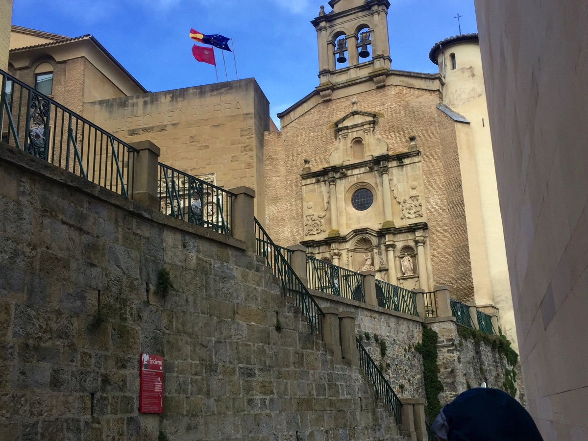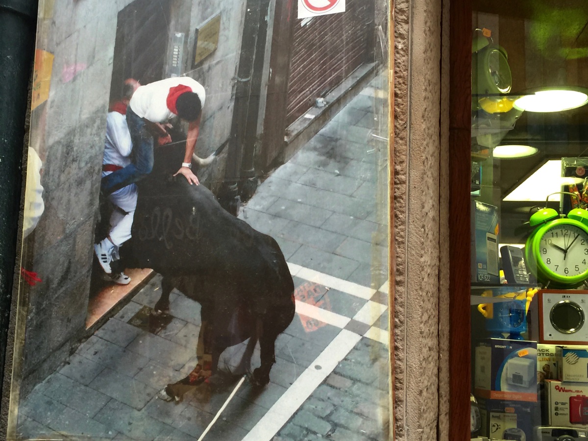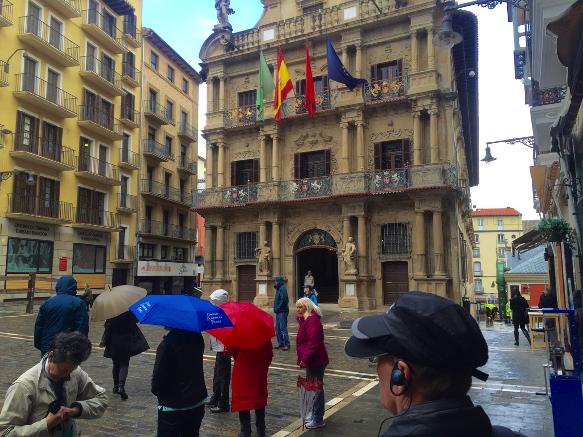 The Museum of Navarre in the background is in an old pilgrim's hospital dating from the 16th century. The bulls run on the street down below.