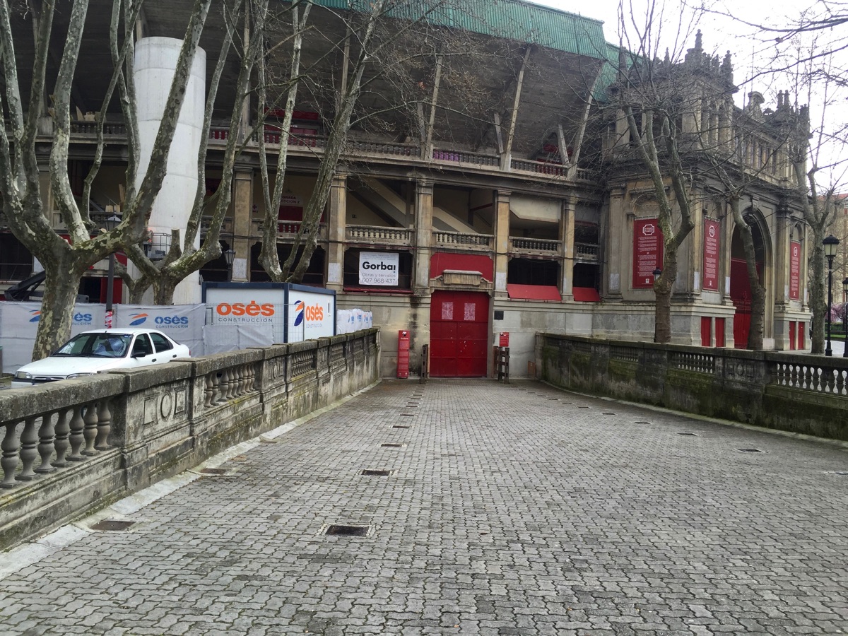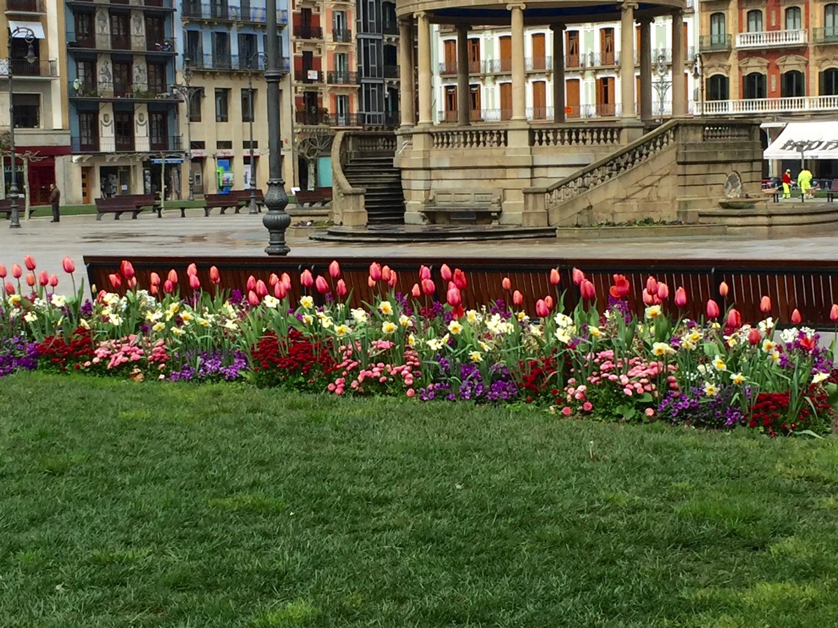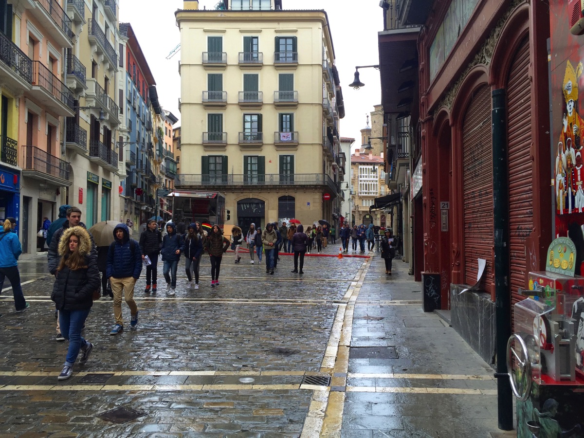 The Museum of Navarre in the background is in an old pilgrim's hospital dating from the 16th century. The bulls run on the street down below.
