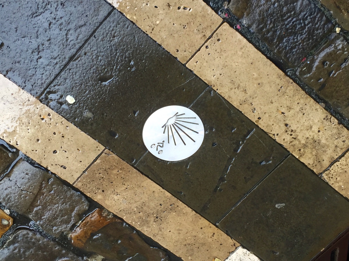 Pamplona is also on one of the pilgrim's routes on the way to Santiago. Here is the familiar marker in the pavement.