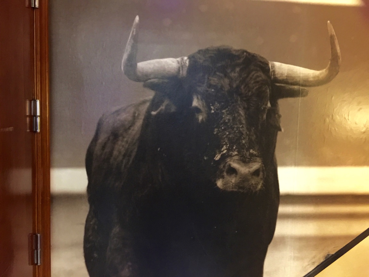 Imagine thousands of humans followed by running bulls behind them coming up this street. The race is held on several mornings during the July festival week. The course is about a thousand meters long, six bulls participate each time and about 2,500 humans. Up to 100 persons are injured every year and, over time, fifteen people have been killed.