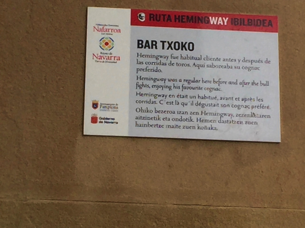 We settled on the Bar Txoko where Hemingway supposedly spent a good deal of time in 1959 although it probably looks a good deal different than in his day.