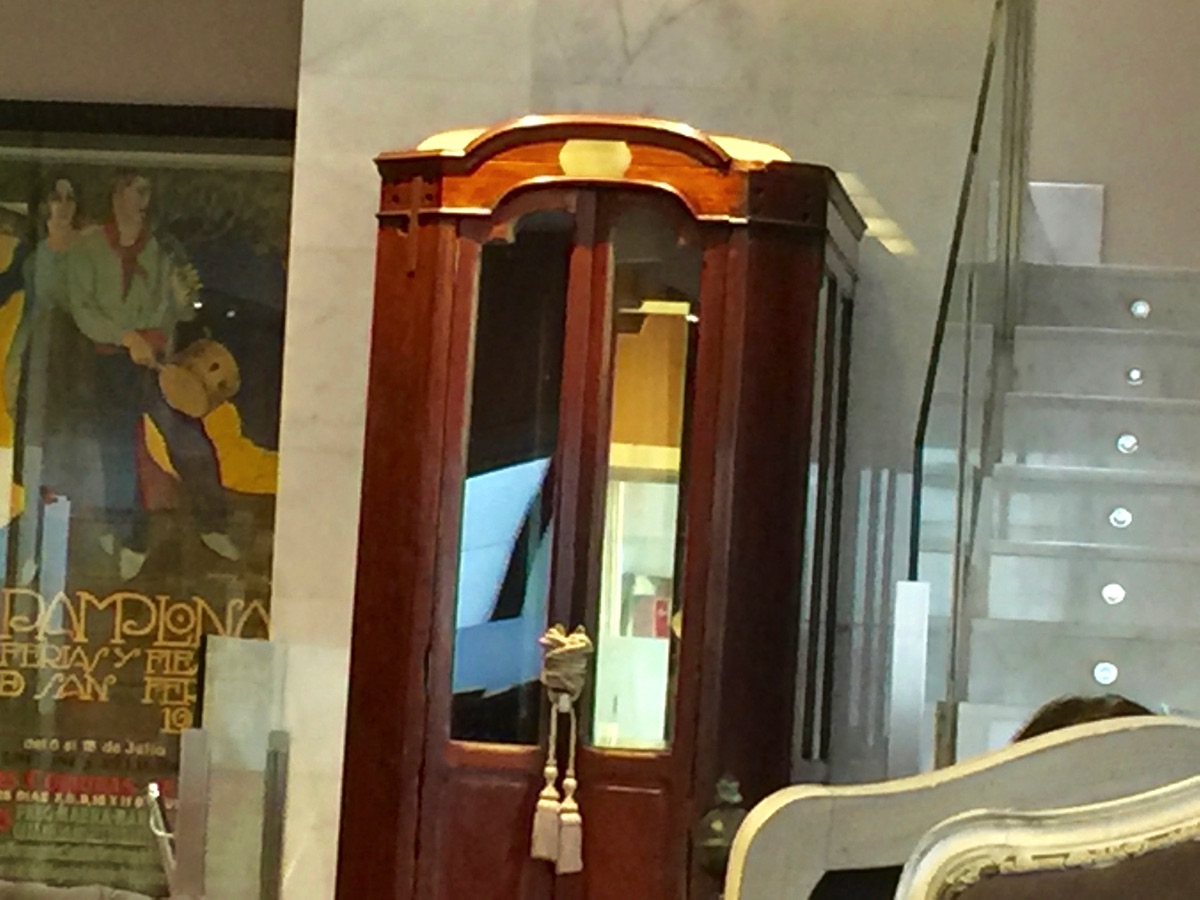 After walking around after lunch we took a rest break at the Gran Hotel La Perla in the square. It too was frequented by Hemingway although it probably has been upscaled a bit. This elevator cab from his hotel was in the lobby.