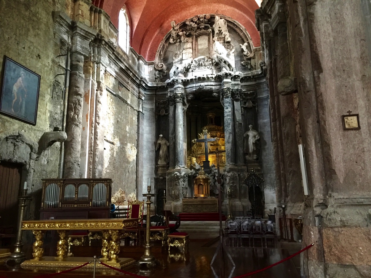 Igreja de Sao Domingos. Dating from the 13th century, it hosted royal weddings until 1910. Partly and totally destroyed in two earthquakes in 1531 and 1755, a fire in 1959 completely gutted the church. It reopened in 1994. We went here for Easter Mass.
