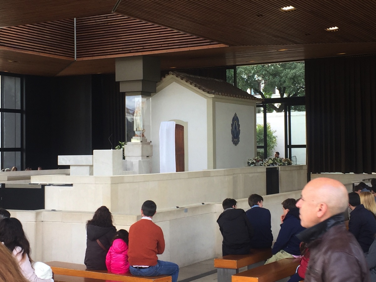 Chapel of the Apparitions. The statue is at the spot where the Virgin Mary appeared to the children several times in 1917.