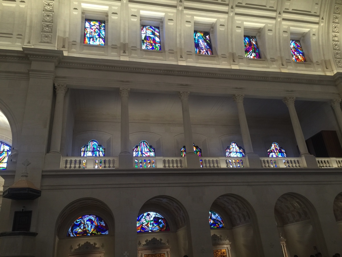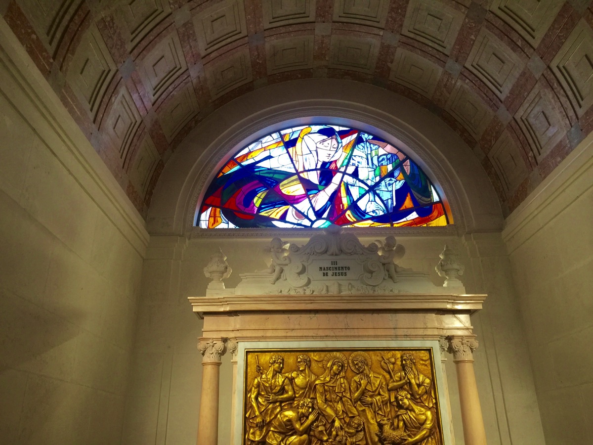 Altars and stained glass windows in the Basilica commemorate the mysteries of the Rosary (events in the lives of Christ and the Virgin Mary) and the apparitions of the Virgin Mary.