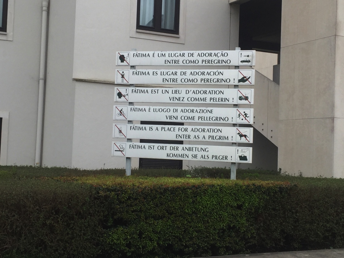 Arriving at Fatima, we saw this sign. Fatima is one of Catholicism's major pilgrimage sites where the Virgin Mary appeared to three Portuguese children in 1917.