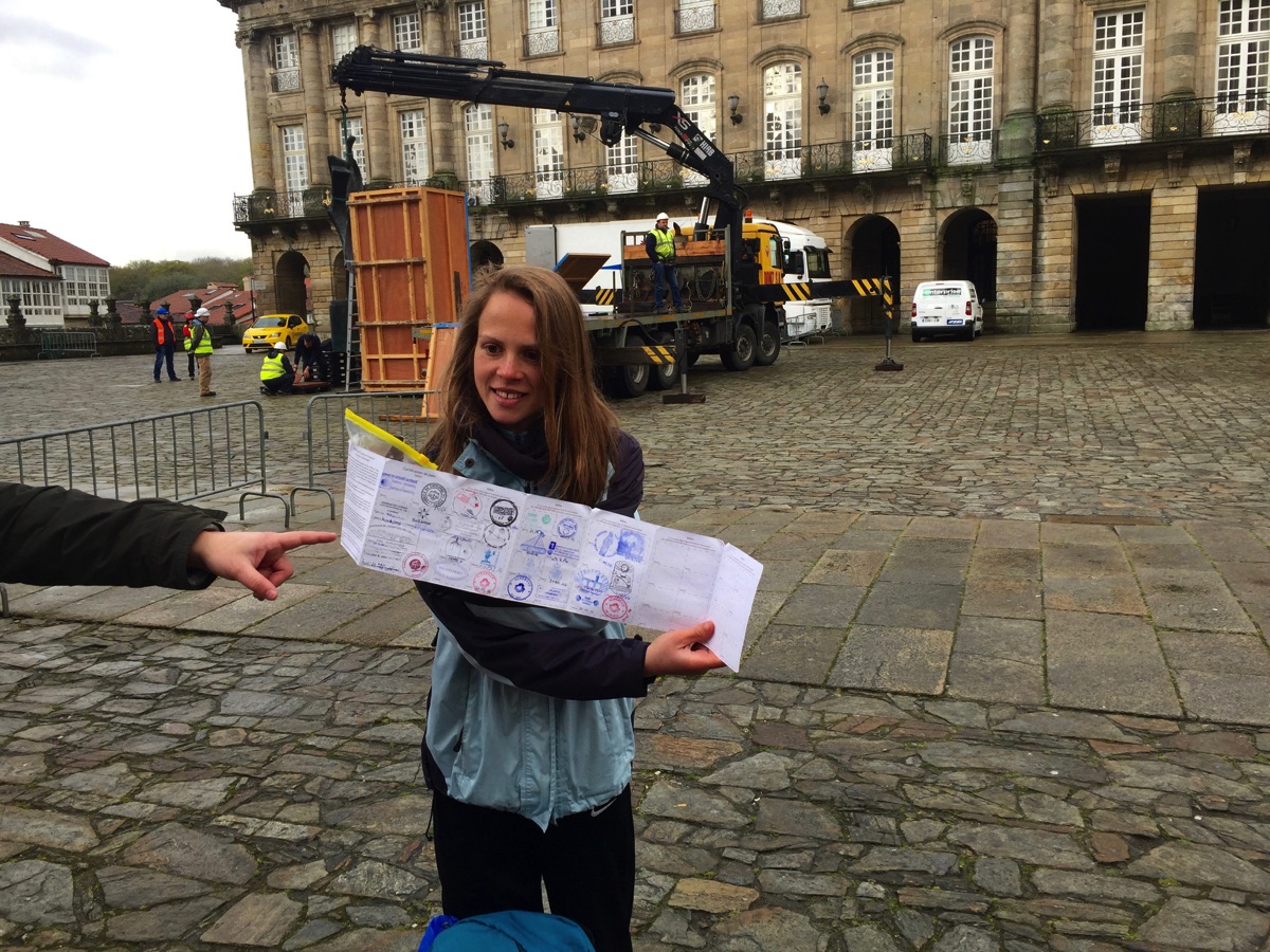 Our guide stopped this young pilgrim. She was from Germany and had started her pilgrimage in Porto, Portugal, a distance of about 140 miles. She said she was not particularly religious. Pilgrims make the journey for all sorts of reasons, most of which are not religious. Her pilgrimage passport shows where she stopped on her journey.
