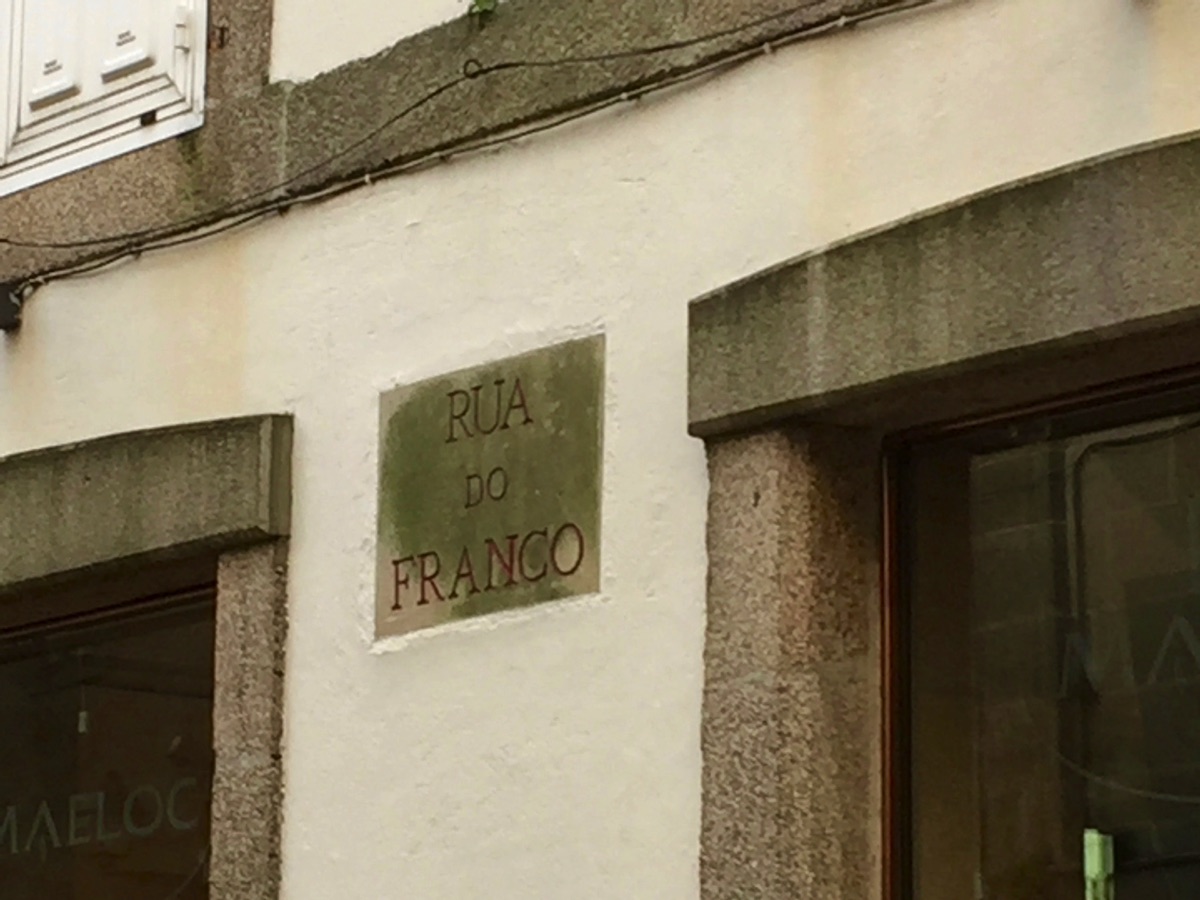 References to the Spanish dictator have disappeared in many areas of Spain but this street survives and contains many restaurants in the old part of Santiago.