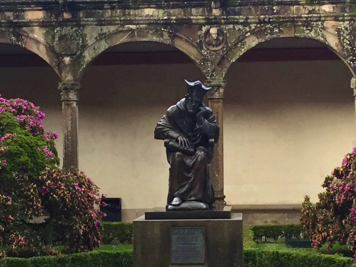 Statue of a former Archbishop of Santiago who had a father who earlier was Archbishop. The son's patronage resulted in a predecessor school to the present University of Santiago de Compostela.
